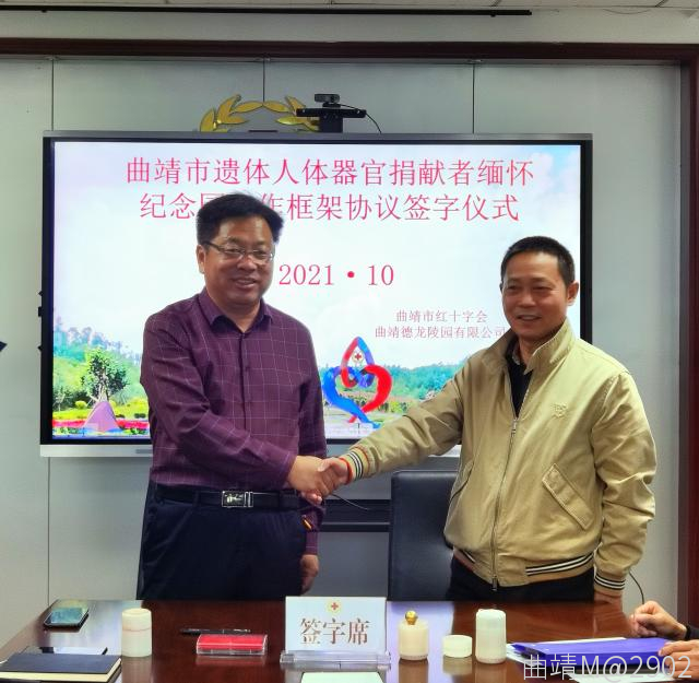 10月13日,曲靖市紅十字會舉行曲靖市遺體人體器官捐獻者緬懷紀念園項目建設(shè)簽約儀式,曲靖市紅十字會與曲靖德龍陵園有限公司正式簽訂了項目建設(shè)協(xié)議書。該紀念園的建成是我市首個,云南省第五個遺體人體器官捐獻者紀念園。市紅十字會干部職工、志愿者代表,曲靖德龍陵園有限公司董事長,總經(jīng)理參加簽約儀式。